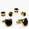 Black Circular Onyx with Gold Octagon Edge Studs and Cufflinks |