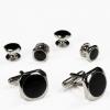 Black Circular Onyx with Silver Octagon Edge Studs and Cufflinks |
