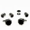 Black Octagon Onyx with Silver Edge Studs and Cufflinks |