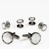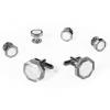 White Circular Mother of Pearl With Silver Diamond Cut Edge Studs and Cufflinks |